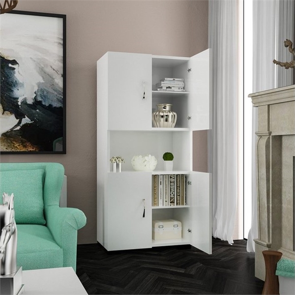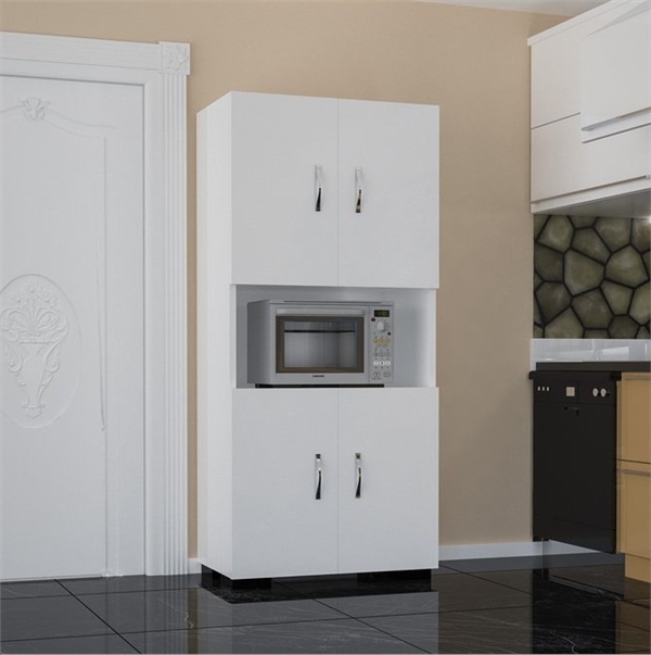It is sure that every home needs a modern storage unit with 4 shutters, as well as 2 shelves for storing the kitchen and also a shelf for placing the microwave European MDF White and there are wooden colors - brown-beige Height: 160 Width: 60 Depth: 35